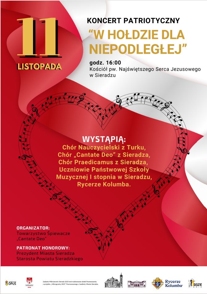 11 listopada 2025 roku odbył się, jak co roku, koncert muzyki patriotycznej "W hołdzie dla Niepodległej". Koncert miał miejsce w naszej macierzystej parafii pw. NSJ w Sieradzu. W koncercie udział wzięli: