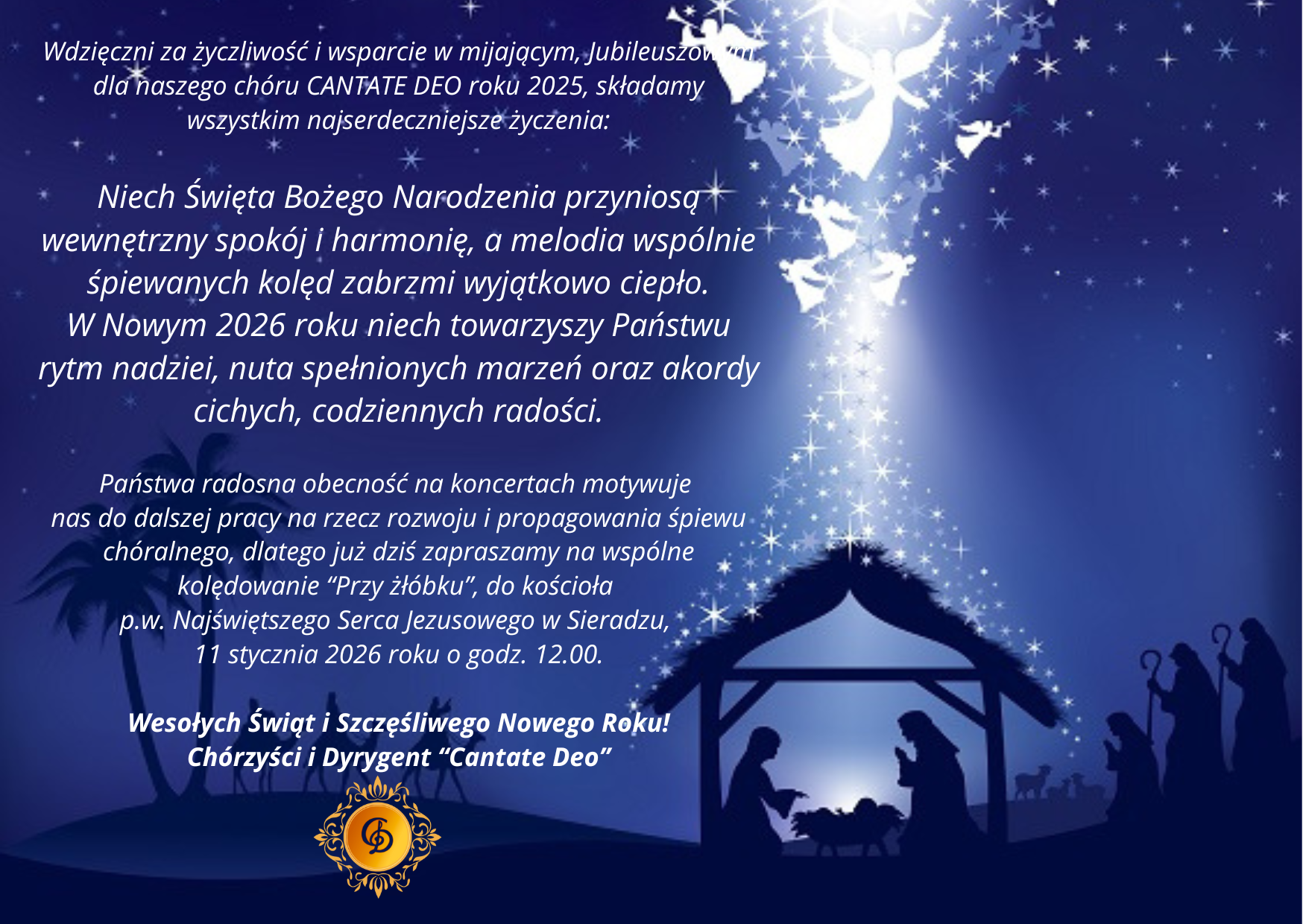 Podczas Mszy Świętej o godz. 12.00 oraz podczas koncertu po jej zakończeniu, śpiew kolęd poprowadził chór Cantate Deo, pod batutą Przemysława Pawlaka. 🎶