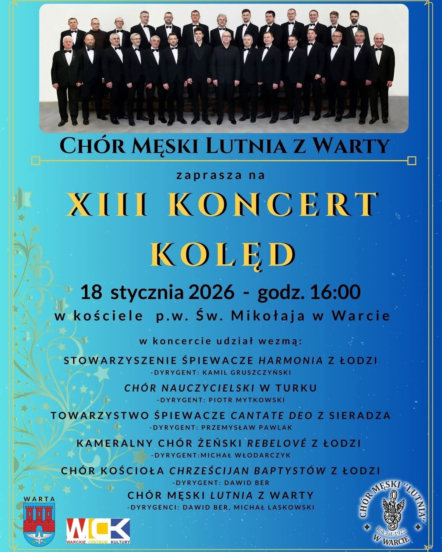 18 stycznia 2026r, w kościele p.w. Św. Mikołaja w Warcie, odbył się kolejny już Koncert Kolęd, zorganizowany przez działający w tym mieście Chór Męski "Lutnia".