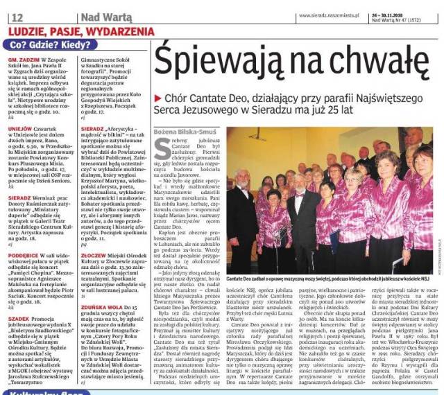 Relacja w tygodniku "Nad Wartą" z dnia 24. listopada