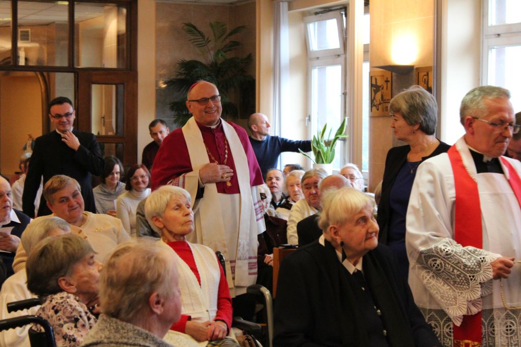 Po Mszy św. nastąpiła przerwa na obiad po którym ks. bp Wiesław Alojzy Mering udał się do Domu Pomocy Społecznej przy ul. Armii Krajowej 34 aby spotkać się z dyrekcją, personelem i rezydentami DPS. Odwiedził także osoby leżące w swoich mieszkaniach udzielając im Pasterskiego błogosławieństwa w dzielnym znoszeniu choroby. W godzinie Miłosierdzia w kaplicy DPS odmówiono wspólnie Koronkę do Miłosierdzia Bożego za wszystkich pensjonariuszy i opiekujących się nimi. Modlitwę poprowadził ks. Ryszard Kokoszka – kapelan DPS. Na zakończenie XXVI Światowego Dnia Chorego w rejonie sieradzkim ks. bp Wiesław Alojzy Mering odniósł się do odczytanego wcześniej wiersza Janusza St. Pasierba i udzielił Pasterskiego błogosławieństwa wszystkim uczestnikom tego spotkania.