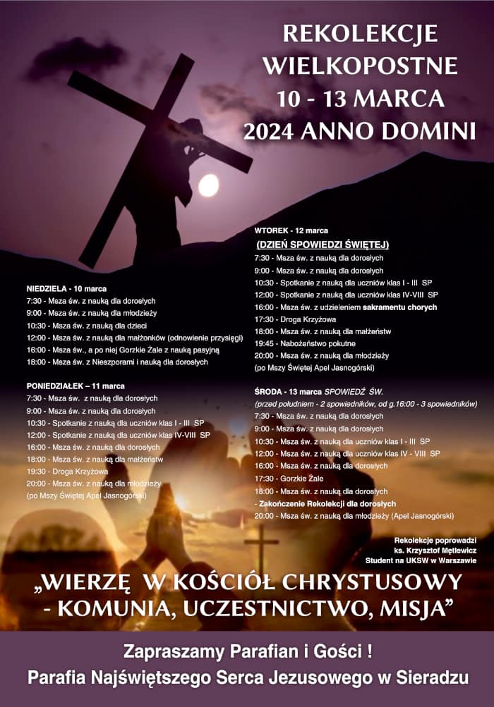 Rozpoczęliśmy Wielki Post wezwaniami ,,Nawracajcie się”, „Wierzcie w Ewangelię”. Kościół zachęca nas do zerwania z grzechem i do pójścia za Chrystusem. Przemiana naszego serca pozwoli nam przemienić nasze życie i idąc śladami Chrystusa wołać razem z Nim: ,,Czas się wypełnił i bliskie jest królestwo Boże. Nawracajcie się i wierzcie w Ewangelię”. Pomocą w przemianie serca są nabożeństwa pasyjne: