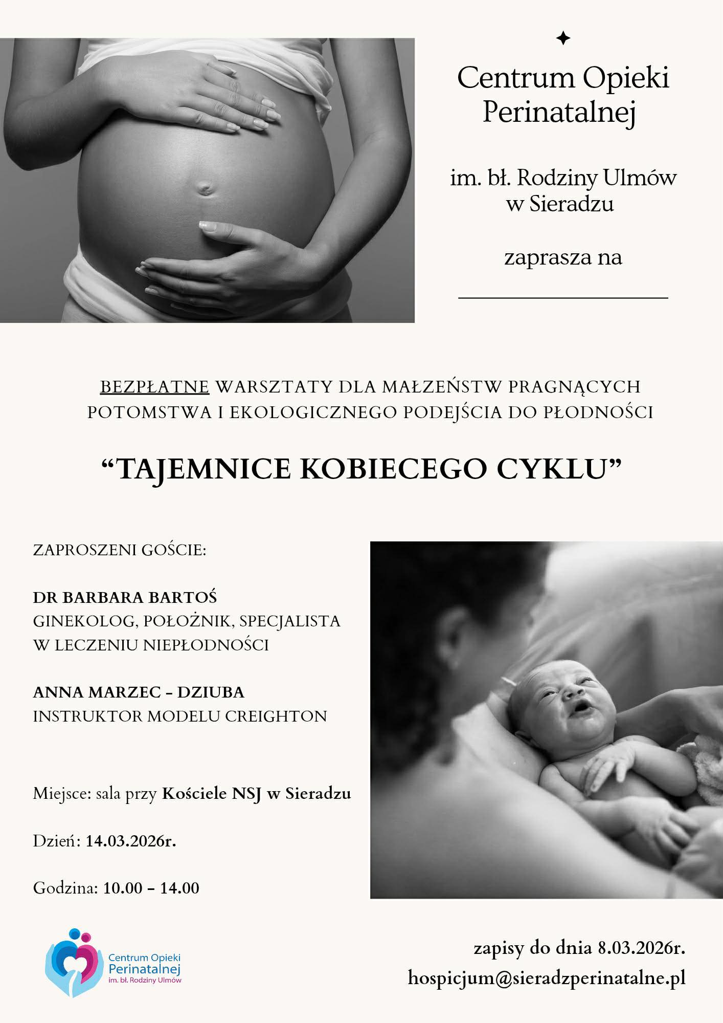 14. Centrum opieki perinatalnej w Sieradzu zaprasza małżeństwa na spotkanie i konferencje poświęcone metodzie planowania ciąży metodą naprotechnologii, którą Kościół aprobuje. Zapraszamy 14 marca małżeństwa, które mają problemy z zajściem w ciążę. Więcej informacji na stronie centrum i naszym parafialnym facebooku. Spotkanie odbędzie się w naszej parafii.